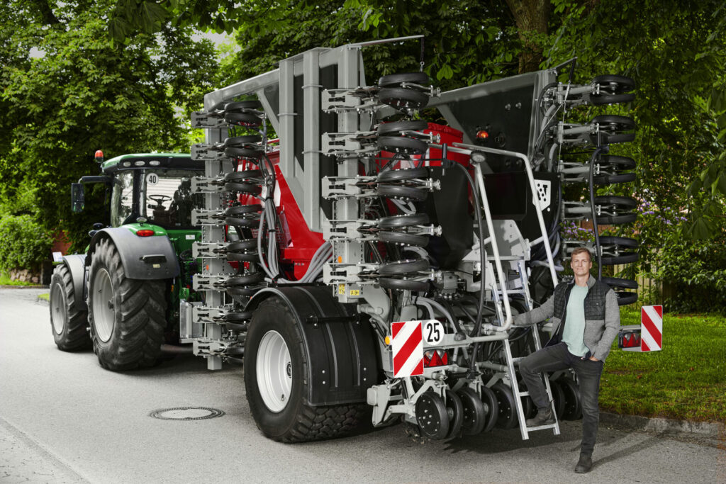 Die Maschine lässt sich auf 3 Meter Transportbreite einklappen – für sicheren Straßentransport mit europäischer Zulassung bis 40 km/h.