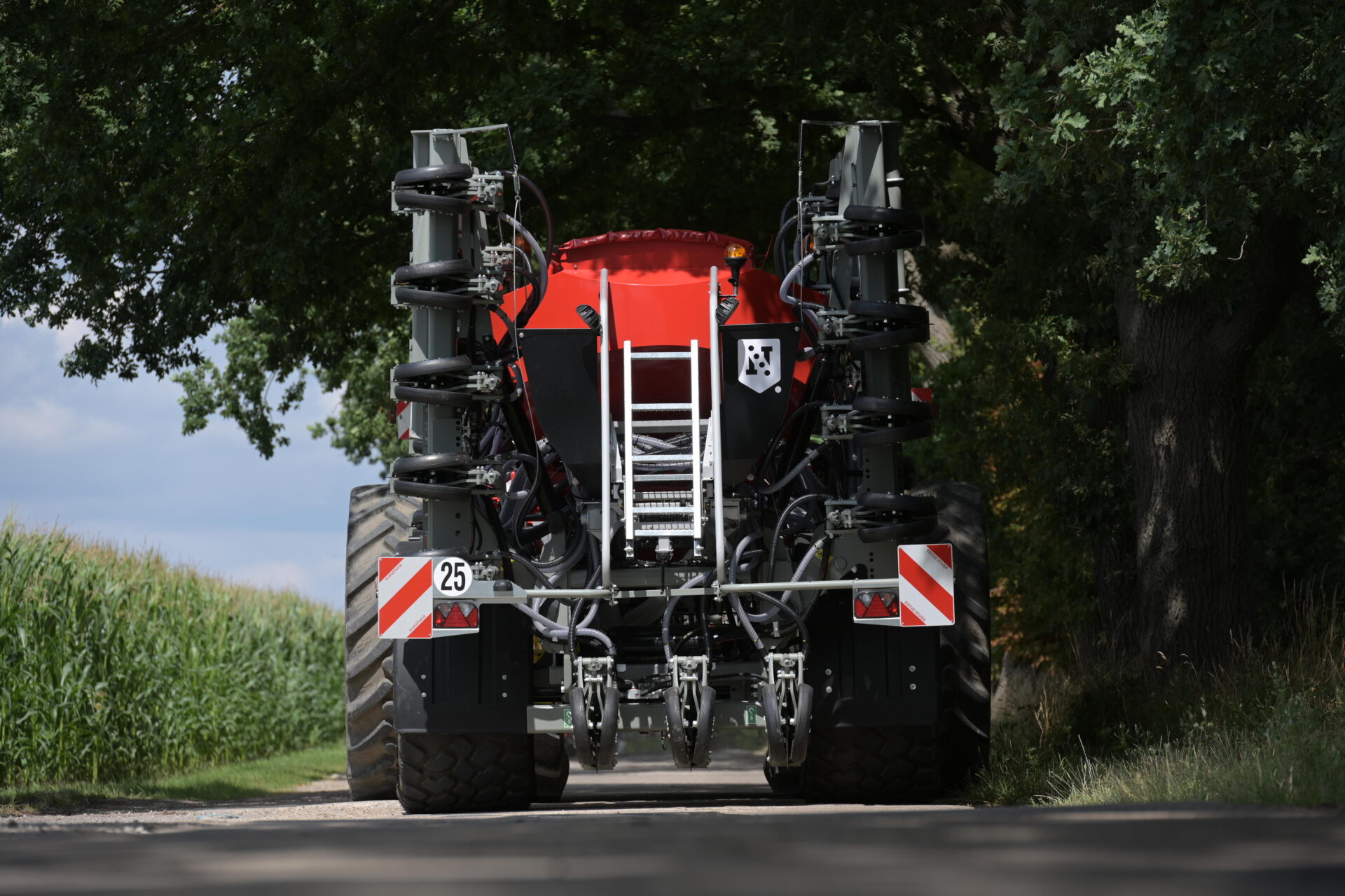 Optional können am Heck bis zu zwei 120-Liter-Zusatztanks montiert werden, etwa für Feinsämereien, Schneckenkorn oder Mikrogranulate.